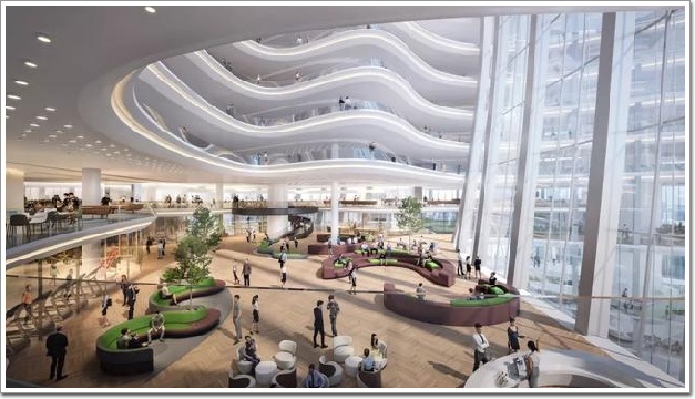 OPPO深圳總部大樓占地面積18.5萬平方米,高度達200米,共42層,由四個互聯(lián)互通的橢圓形塔樓組成,其中兩座塔樓呈現(xiàn)出靈活開放的空間狀態(tài),并由一個20層高的垂直大堂相連,而剩余的兩座外部塔樓,則主要用于提供包括垂直交通在內的各項基礎服務所需。