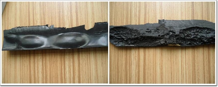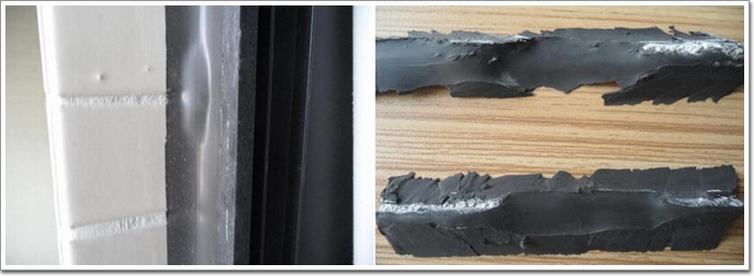 此類起泡的密封膠表面多為連續(xù)的或單個的泡狀隆起,割開密封膠,對應(yīng)位置有連續(xù)密集的氣泡,或是有單個的氣泡。