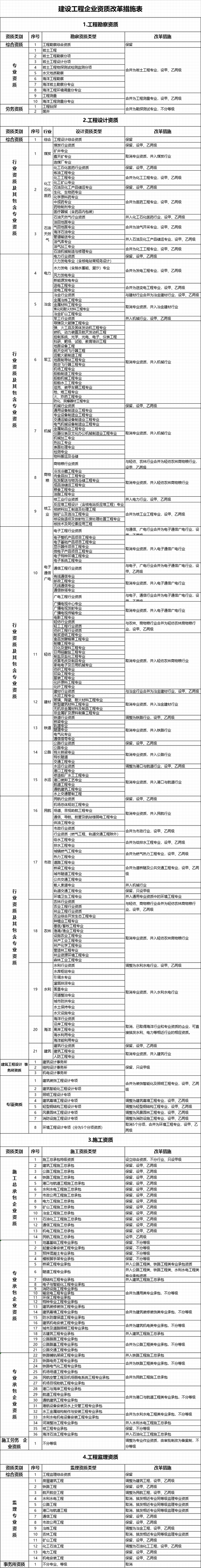 3、建設(shè)工程企業(yè)資質(zhì)改革措施表