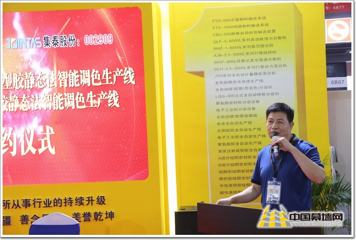 前行路上的好伙伴、好戰友——金銀河,總能在關鍵時刻,推出新的關鍵設備,很好地解決了密封膠行業在生產過程中遇見的難題。作為簽約方的廣州集泰化工股份有限公司鄒珍凡總經理,到會并發表講話。