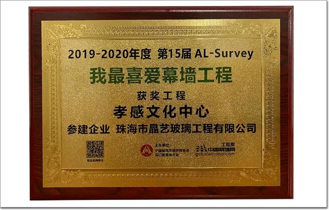 “KGE”珠海市晶藝玻璃工程有限公司——憑借其優秀、創新的設計能力,高效、安全的施工水平,以及完美的工程項目作品,最終贏得廣大終端客戶、行業專家、設計院、顧問公司和媒體總編的高度認可,在第15屆AL-Survey2019-2020中國門窗幕墻行業大型讀者調查暨“我最喜愛幕墻工程”評選活動中,成功摘得大獎,登陸年度工程TOP榜!