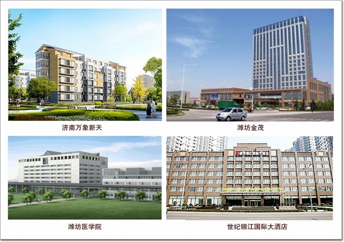 優良的品質、良好的信譽、知名的品牌為順和贏得行業內外的支持與信賴,公司先后參建多項大型工程項目,致力于為經典門窗幕墻工程保駕護航。其中極具代表性的工程有:濟南萬象新天、世紀錦江國際大酒店、濰坊佳樂家、濰坊金茂、濰坊醫學院等。