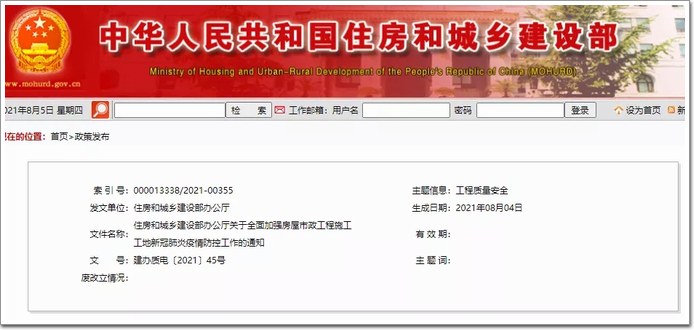 01、住建部《房屋建筑和市政基礎設施工程施工現場新冠肺炎疫情常態化防控工作指南的通知》