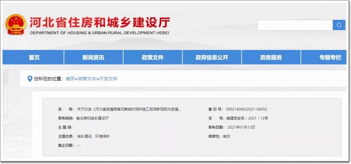 關于印發《河北省疫情隔離觀察臨時場所施工現場新冠肺炎疫情防控工作指南》的通知