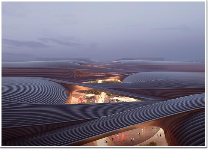 建筑師設計了一個復合屋頂系統,以隔絕室內環境并提供最大的吸音效果。屋頂的對稱幾何形狀創造了一個有效的輕質大跨度結構,提供了一個無柱的靈活空間,可以快速適應展覽和使用性質的變化。ZHA解釋說:"它的工業材料和規模與其流暢的建筑語言保持平衡。模塊化的制作和施工方法將最大限度地減少項目的施工時間和運營成本。
