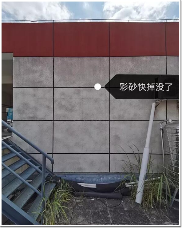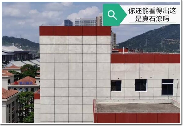 現(xiàn)在呢?乳液都是清一色的最差的苯丙,含量都在10%,甚至更低,為了降低施工中的料耗,廠家不再用純彩砂,而是通過添加粉料來提高遮蓋力,平方用量只需2~2.5公斤,這樣的產(chǎn)品,質(zhì)量與以前的真石漆比,漆膜渾濁不清,用不了多久就發(fā)暗發(fā)黃,脫粉掉砂。