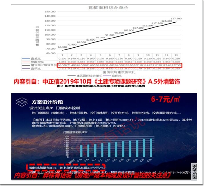 窗地比每增加0.01,則折合建面增加費用為4-7元/㎡不等。