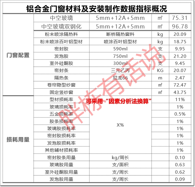 a、僅對型材進行調差,調差部分只計取稅金(安裝稅金),不計取管理費、利潤、規費等其他費用。