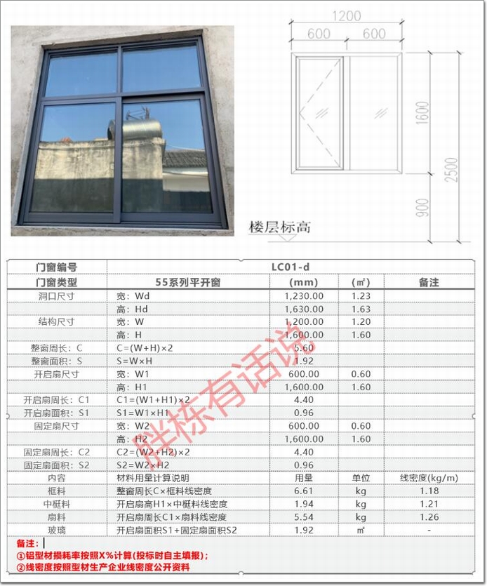 門窗計算示范:
