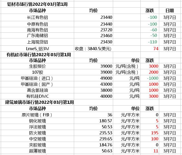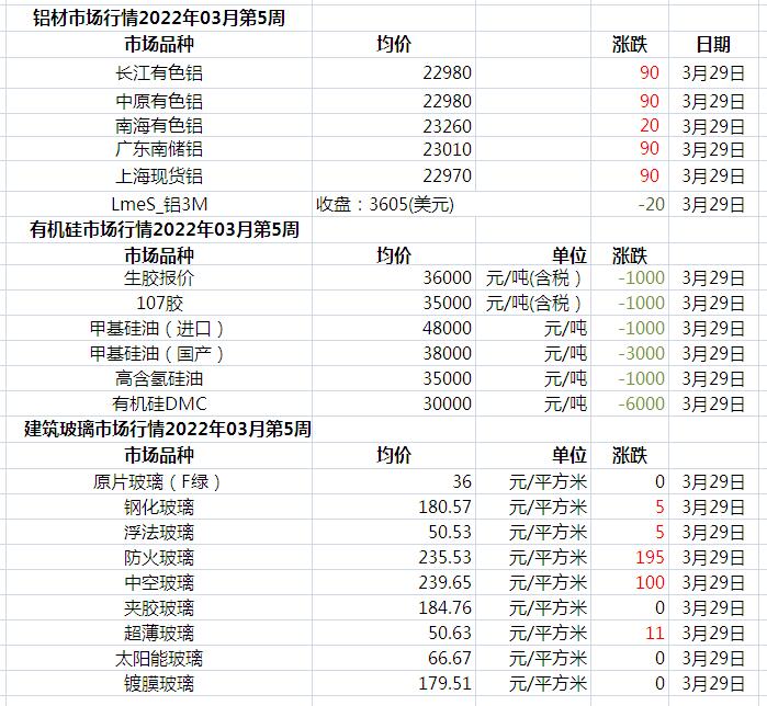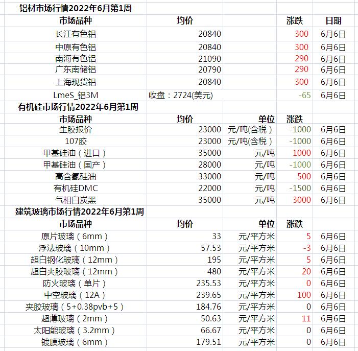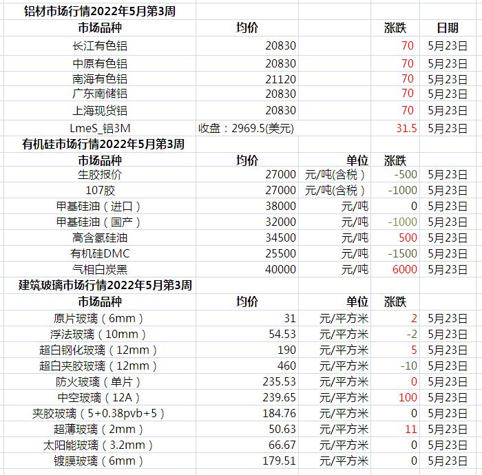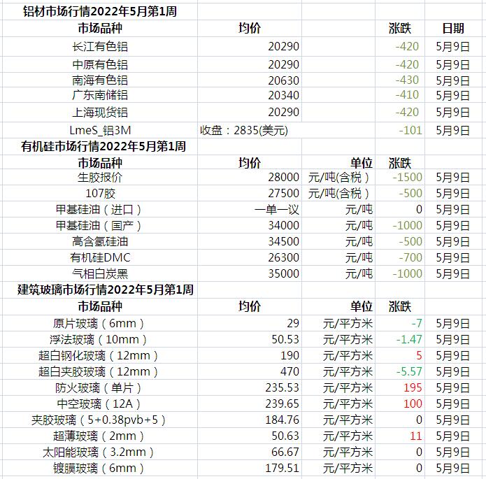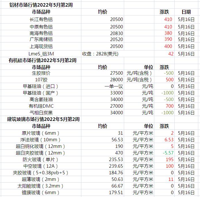 此原材料價格由中國幕墻網收集整理,僅供參考!