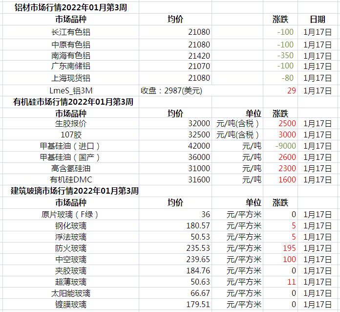 此原材料價格由中國幕墻網收集整理,僅供參考!