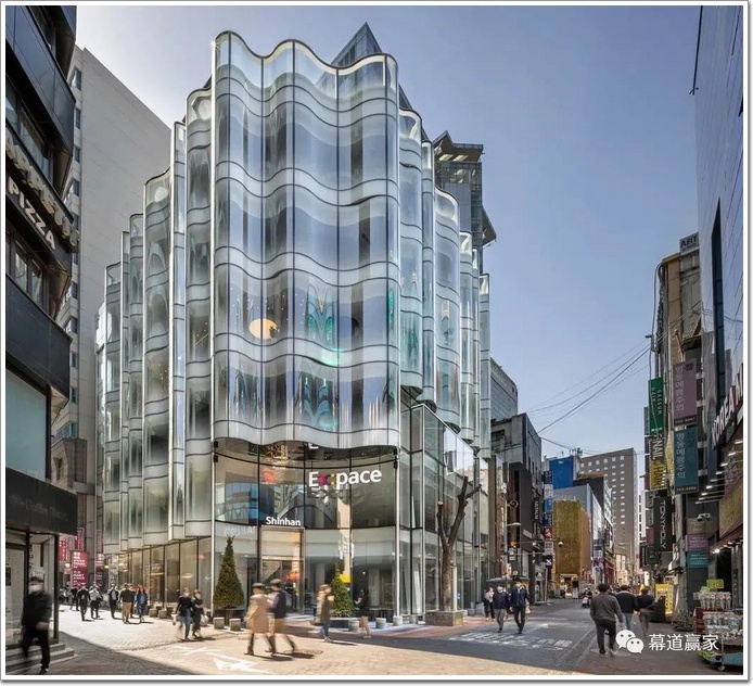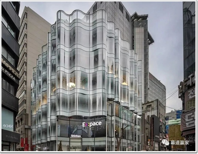 “新韓銀行明洞分行”是新韓金融集團(tuán)全資控股的銀行在首爾分行。2006年4月成功完成了與朝興銀行(韓國第一家歷史上百年的銀行)的合并,成為韓國最大的商業(yè)銀行之一。該分行位于韓國首爾繁華的街道交叉口1992年竣工的建筑,近三十年來一直作為新韓銀行的明洞分行,近期因容納銀行新系統(tǒng)和設(shè)施的需求而進(jìn)行更新擴(kuò)張工程。由德國公司Atelier KI JUN KIM及 Studio in Loco領(lǐng)導(dǎo)的翻新項(xiàng)目開始工作。2021年完工,該項(xiàng)目環(huán)繞建筑物的玻璃幕墻是六層,通過虛實(shí)分明的曲面玻璃吸引行人。