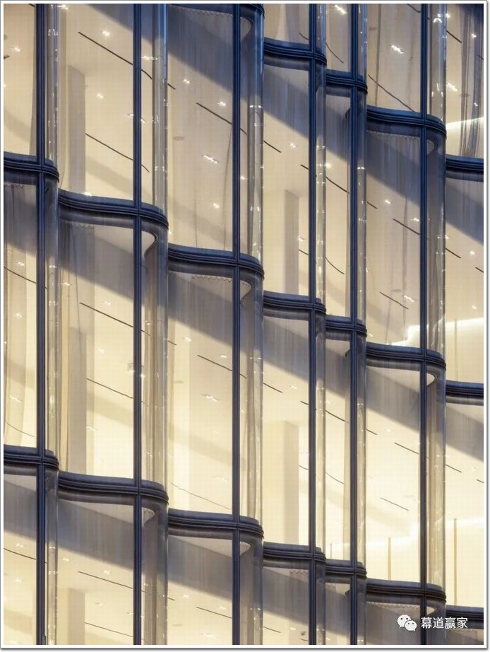 透光的玻璃材料捕捉不同時(shí)段、不同角度的光線,呈現(xiàn)出多變而多彩的外觀。起伏的曲線則賦予立面柔和而飄逸的觀感,在虛實(shí)之中營造獨(dú)特的空間氛圍