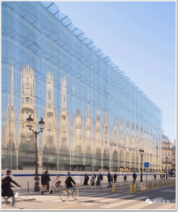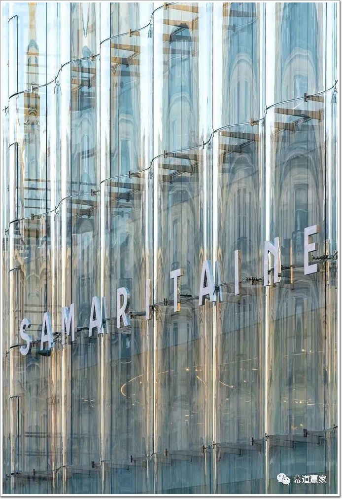 改造后的建筑采用了波浪玻璃幕墻這也是對(duì)莎瑪利塔百貨公司的原始建筑師Frantz Jourdain和Henri Sauvage所崇尚的前衛(wèi)藝術(shù)精神和對(duì)玻璃研究的延伸。
