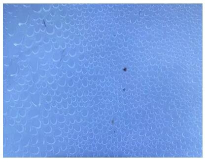 從理論上講,排氣孔除了能保持背板區域的空氣壓力平衡外,還能實現該區域的通風作用,從而將潮氣排出。但庫存的起霧單元板塊似乎并沒有因為時間的作用解決起霧問題。為了防止排氣孔及墊框區域仍有積水,我們將單元板塊立起來控干積水后再觀察了一天,結果仍然沒有改善。于是我們又進行了如下的試驗: