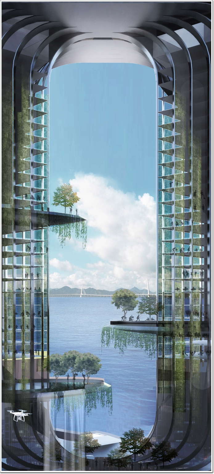 方案充分利用海景資源,實現景觀價值最大化,使總部大腦領導力中心可俯瞰整座城市;總部辦公分為兩個部分,高效的同時被公共配套環串聯,形成最大的交流與共享空間;城市客廳集文化、商業、藝術展廳、社會元素為一體,大型快速扶梯及小巷穿梭其中。