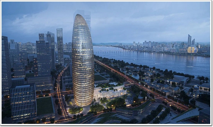 項目由Gensler事務所設計,“G”家除了掌握嫻熟的“流線型”現代高層建筑設計功底,更表達出對中國傳統文化精髓的深刻領悟,一直被建筑圈譽為“中國通”。透過設計的力量去創造更好的世界,其獨特的外形將成為錢塘江金融港灣高顏值的地標建筑,與周邊浙商銀行總部、國博二期、臺泥杭州環保科技總部、浙商產融總部等組成具有辨識度的城市天際線。