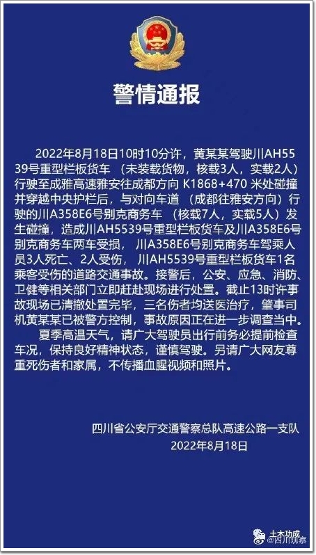 8月18日上午,四川某規劃院5人出差,不幸飛來橫禍,在高速公路上遭遇對面的大貨車撞擊,事故已造成規劃院的3人死亡,2人受傷。為逝者默哀........,傷者早日康復.......