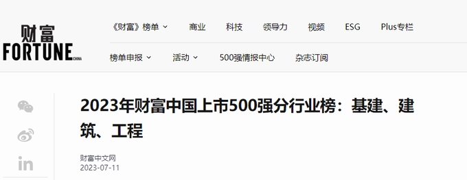 2023年7月11日,2023年《財富》中國上市500強排行榜公布,該榜單考量了全球范圍內最大的中國上市企業在過去一年的業績和成就,其中基建、建筑行業共26家企業上榜。