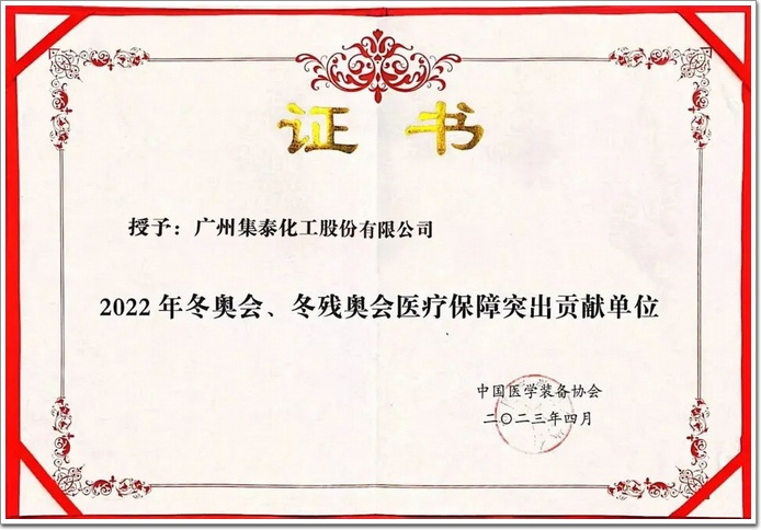 近日,集泰股份獲得了中國醫學裝備協會頒發的“2022年冬奧會、冬殘奧會醫療保障突出貢獻單位”稱號。該獎項旨在表彰北京冬奧會、冬殘奧會的先進典型企業,激勵各相關單位為我國醫療行業的發展而努力。