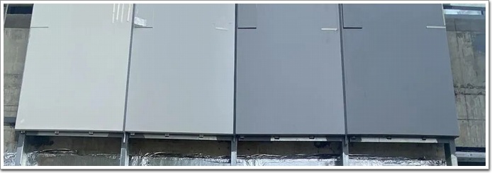 兩個(gè)板塊都安裝完成之后,要進(jìn)行層間鋁板的安裝,用密封膠收口。自此,該處的樣板安裝基本完成。