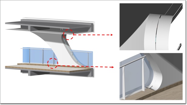 優(yōu)雅的流線造型是項(xiàng)目的亮眼之處,此處造型的品質(zhì)感對(duì)于整體效果舉足輕重。4棟立面異形造型共8種規(guī)格,我們對(duì)異形立面造型做了細(xì)致的推敲和優(yōu)化,極力提高其品質(zhì)感和形體呈現(xiàn)效果 。