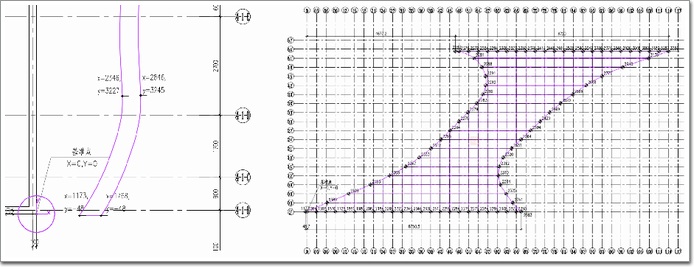 本著審慎、嚴(yán)謹(jǐn)?shù)膽B(tài)度,我們對(duì)該造型的生產(chǎn)、加工、安裝進(jìn)行了嚴(yán)謹(jǐn)?shù)耐魄。為了?shí)現(xiàn)立面造型整體無縫的效果,考慮采用整體單元裝配式安裝。精確控制整體造型的定位,將基準(zhǔn)面分為300間隔的軸網(wǎng),造型投影與軸網(wǎng)的每一個(gè)交點(diǎn)旁標(biāo)注相對(duì)于基準(zhǔn)點(diǎn)的坐標(biāo),對(duì)應(yīng)每個(gè)交點(diǎn)的X,Y,Z坐標(biāo),通過定位點(diǎn)來控制整個(gè)造型的外輪廓。