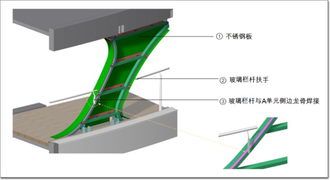 欄板(詞條“欄板”由行業(yè)大百科提供)安裝完成后,進(jìn)行B單元的組裝和安裝,與A單元同理。