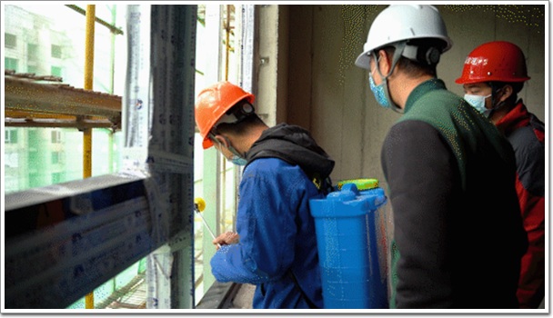 ▲門窗框現(xiàn)場(chǎng)淋水復(fù)核檢驗(yàn)