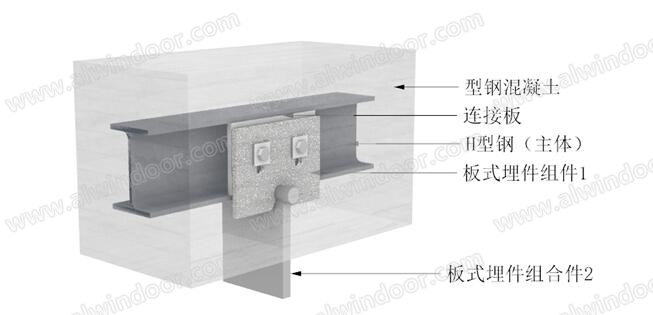 因為項目主體沒有裝飾層,所以在埋件設計時,除了考慮埋件的埋設和受力等,還必須考慮埋件的隱蔽性。即幕墻施工后,埋板必須隱藏而不能外露。