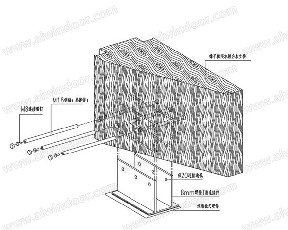 在進行木質龍骨設計時,不僅要考慮幕墻本身的性能需求,木材的特點及力學性能,還需要對木質龍骨進行防腐、防蟲、防火等綜合考量。