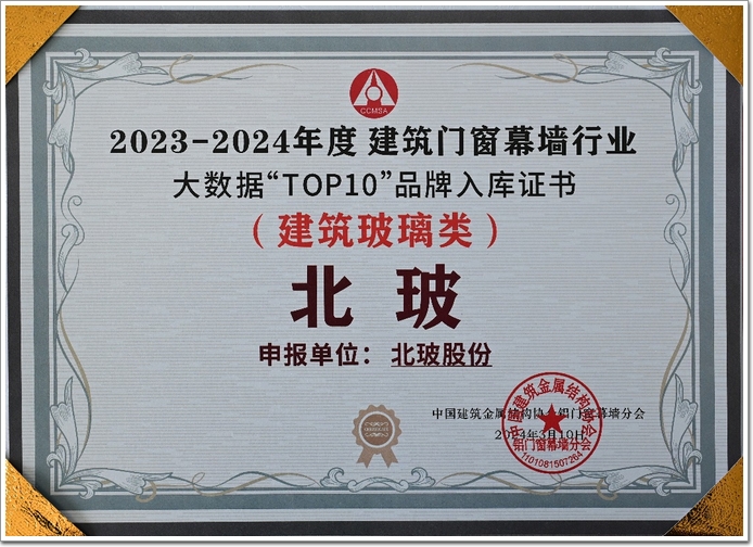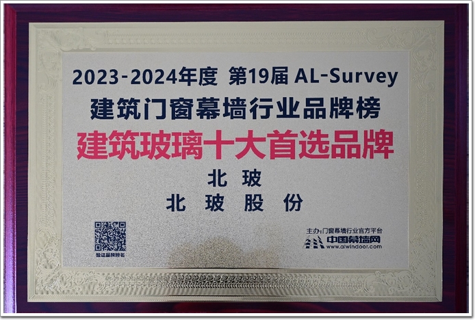 在2023年中,北玻銳意改革、蓄勢揚帆,取得亮眼的成績與業(yè)界口碑,在第19屆AL-Survey2023-2024中國門窗幕墻行業(yè)大型讀者調查暨“首選品牌”推薦活動中再次蟬聯(lián)“建筑玻璃十大首選品牌”大獎。