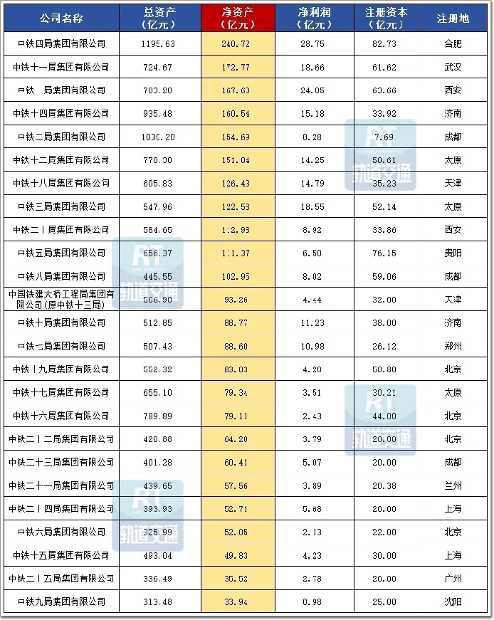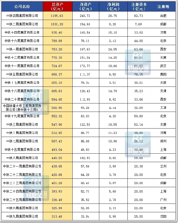兩大公司報告中相繼公布了各子公司情況,作為兩大建筑央企下面的25個二級號碼子公司,中鐵1到25局,也都實力非常強勁,從總資產、凈資產、凈利潤三個方面進行對比,到底哪個實力更勝一籌?