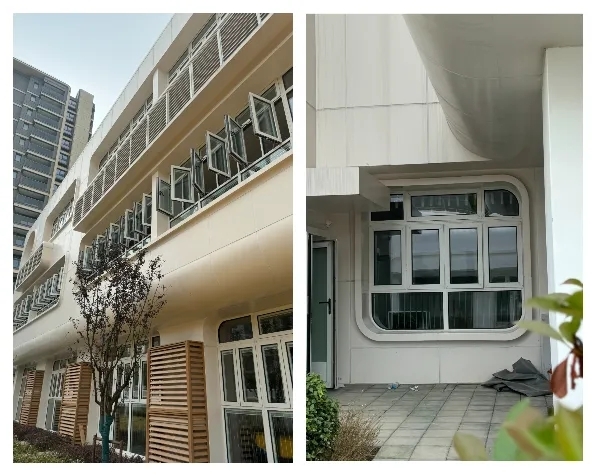 本項目采用了先進的超低能耗建筑技術。尤其采用滿足超低能耗建筑節(jié)能設計標準的外門窗系統(tǒng),WG75Light鋁合金聚氨酯復合超低能耗的圓弧門窗系統(tǒng),整窗傳熱系數(shù)低于1.4W/(m2.K),配置三玻兩腔雙low-e中空玻璃,配置暖邊及充氬工藝,玻璃遮陽系數(shù)不小于0.6,并通過中置百葉遮陽措施實現(xiàn)全年動態(tài)可調的遮陽效果。采用高效節(jié)能的空調和照明系統(tǒng),本項目實現(xiàn)了對能源的高效利用和節(jié)約。此外,項目還注重室內環(huán)境的舒適性和健康性,通過科學的通風和濕度控制,為孩子們提供一個清新、宜人的學習和生活空間。