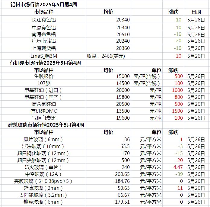 此原材料價(jià)格由中國幕墻網(wǎng)收集整理,僅供參考!