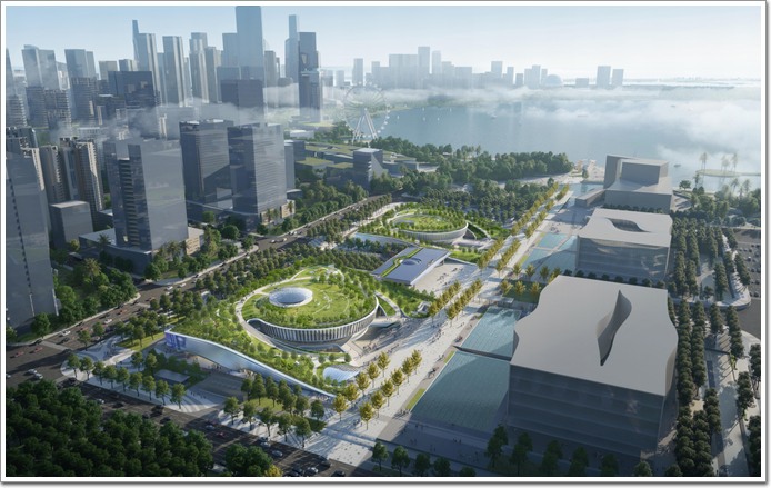 深圳書城灣區(qū)城,以“建筑即城市,自然共融”為核心,采用開敞式設計,無縫連接建筑、城市與自然,中軸公園暢通無阻。開敞式城市通廊設計將地上地下空間相連,使逛書城的體驗可以在室內外自由切換,讓文化活動不局限于封閉的建筑空間中,內部借“曲水流觴”靈感,通過形式豐富的樓梯與坡道組合多元有趣的立體公共空間,構建沉浸式文化空間,涵蓋多元文化業(yè)態(tài),一站式滿足大眾精神需求。屋頂綠化延伸“城市綠毯”,配以海綿城市技術,節(jié)能降耗,樹立綠色建筑典范。