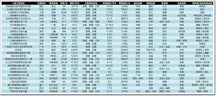 *注:以上排名不分先后,只針對建筑所在地區、幕墻特色,以及配套材料等信息進行統計,不代表獲獎名次。