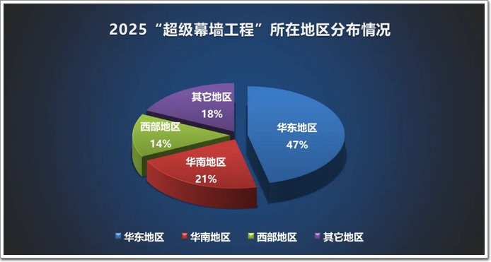 從入圍工程項目的所在地區分布來看,超級幕墻項目包含眾多的商業標桿、城市中心、超高層及總部大樓,它們均是所在地區的絕對地標,且大多集中出現在經濟發達地區的中心城市。