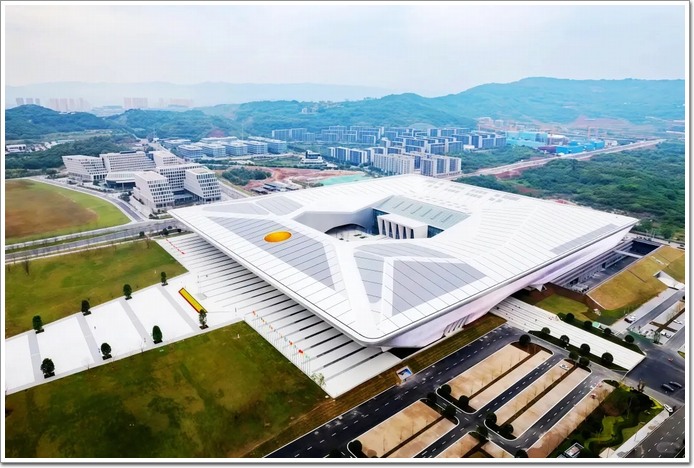 項目亮點:項目位于西部(重慶)科學城,含谷鎮高新大道188號,這座“鋼鐵巨獸”長320米,寬279米。且遠比大家想象中都還要大,總建筑面積≈北京鳥巢;用鋼量≈8.3座埃菲爾鐵塔,是令人驚呼的“基建狂魔”。科學會堂這個“龐然大物”,整個建筑渾然一體,看不到任何鋼架焊接的痕跡,暢行其間有一種特別開闊和通透的感覺。