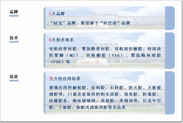 除舊有案例外,硅寶科技最近一兩年成功服務了眾多的大型新興地標,如:華為上海練秋湖研發中心、西安咸陽國際機場、上海世博園溫室花園、招商銀行深圳全球總部大廈、上海臨港西島國際金融中心等等,展示了在下行壓力加大的大環境下,硅寶科技作為頭部企業具備的市場空間、以及集中度進一步提高的行業趨勢。