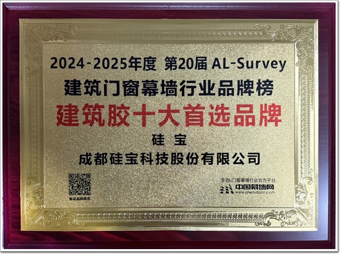 會上,發布了第20屆“AL-Survey”建筑門窗幕墻行業品牌榜單,硅寶科技毫無懸念再次攬獲建筑膠十大首選品牌、行業大數據TOP10品牌入庫,以及北極星建筑獎三項榮譽!