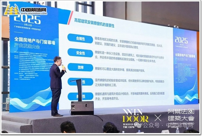 在大會主題演講的環節中,來自電建地產、遠東力進幕墻、凌云幕墻、江蘇博宇(擦窗機)、天閩門窗等代表,圍繞門窗幕墻行業企業的品牌發展,智能建造與建筑工業化,建筑幕墻項目案例創新分享等主題,深入淺出地闡述了行業品牌化新思路,產品新創新,技術新發展的趨勢和應用前景。