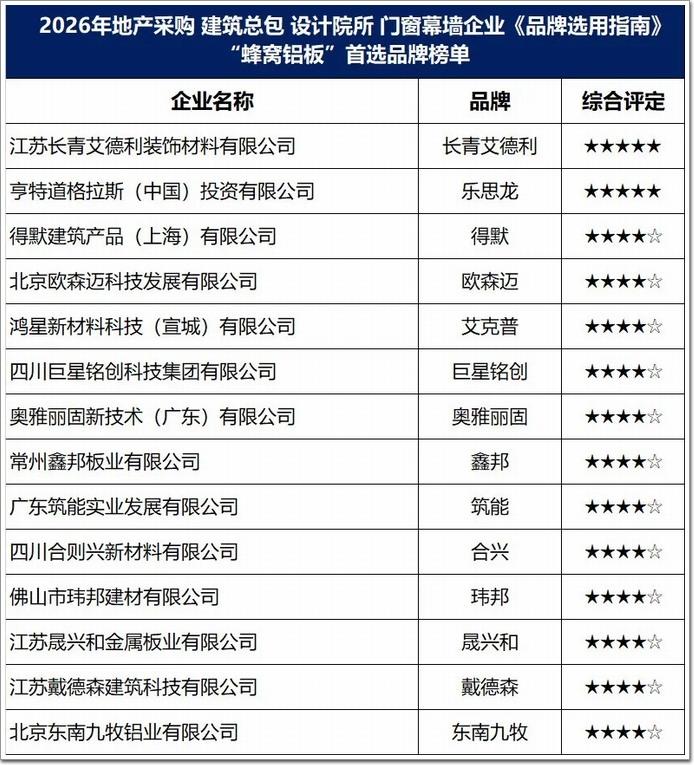 “蜂”神榜!運(yùn)用評(píng)價(jià)體系“5要素”,呈現(xiàn)2026市場(chǎng)首選高端蜂窩鋁板品牌。