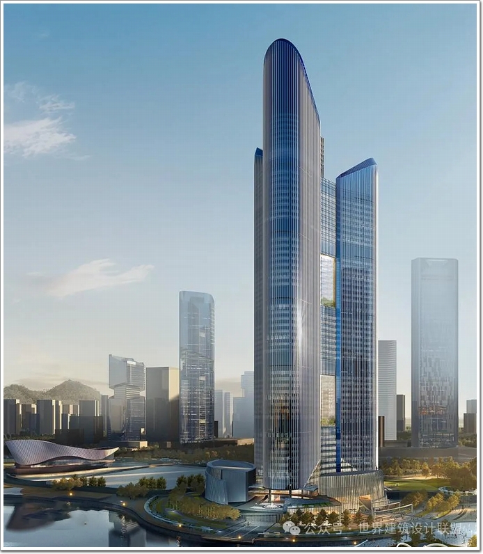 380米高超塔地標,建筑整體簡約挺拔,流線型的體形,鱗片狀的玻璃立面,增添了建筑的顯著性;不僅承載著羅湖區城市更新的戰略使命,更將成為引領大灣區金融科技產業發展的新引擎。