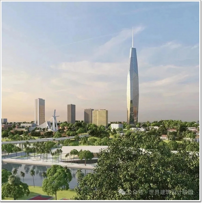 項目位于位于科特迪瓦經濟首都阿比讓高原區,由科特迪瓦本土企業PFO Africa主導開發、黎巴嫩-科特迪瓦裔建筑師Pierre Fakhoury負責設計、比利時建筑巨頭Besix負責主體建造。項目總投資2500億西非法郎(人民幣32億元),總建筑面積15萬平方米,共75層,地上73層、地下2層,定位為集高端辦公、行政服務、商業配套與交通樞紐于一體的綜合性城市地標。