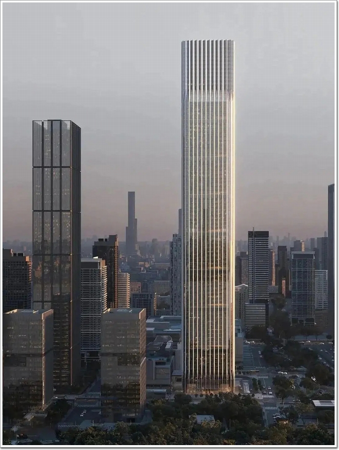 其中最為引人注目的是被稱為“長江之琴”的主塔樓高380米,共80層,由美國KPF事務所擔綱設計。