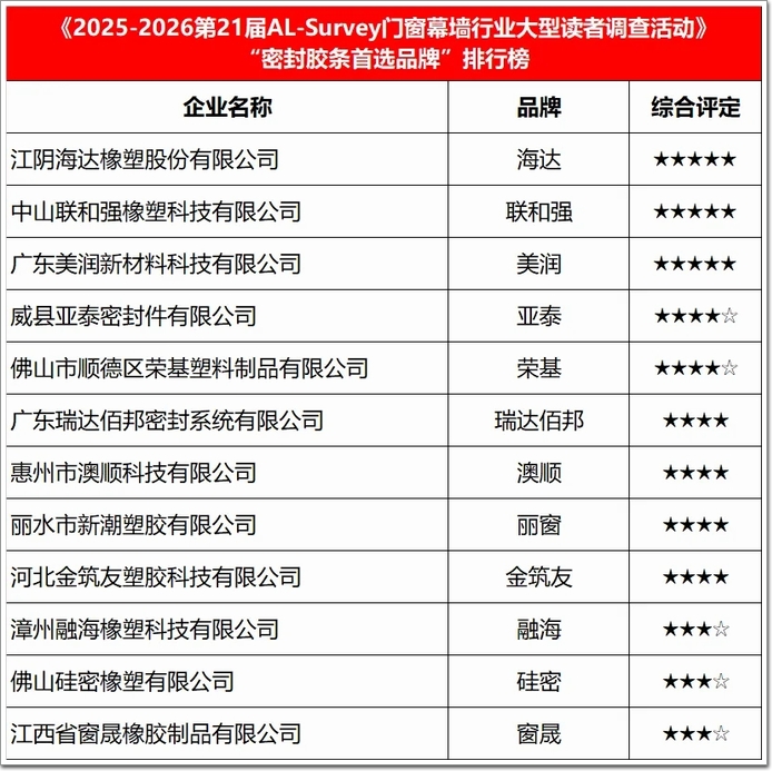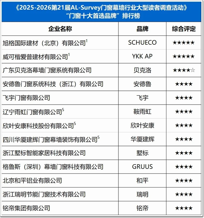 榜單充分彰顯門窗幕墻行業(yè)TOP品牌的IP榮光,用產(chǎn)品與技術(shù)打造核心競爭力,用品牌鑄造企業(yè)發(fā)展基石。