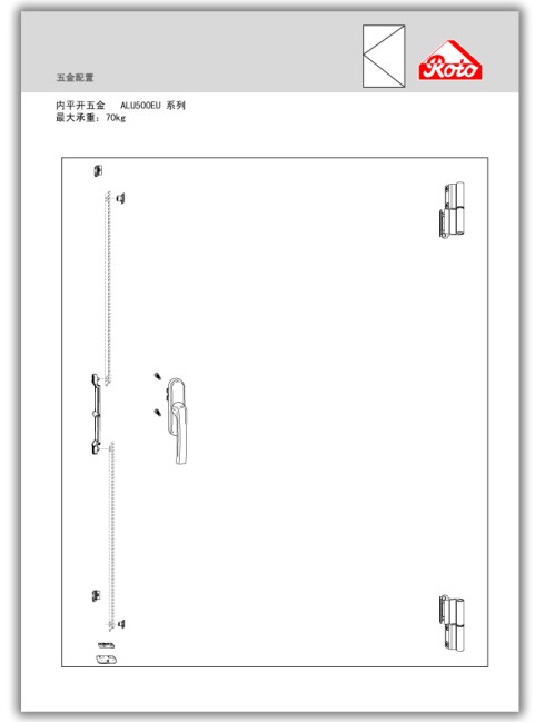 產品特點: 1. 用于鋁合金系統的內平開五金; 2. ALU 500 EU合頁采用螺絲鎖緊。