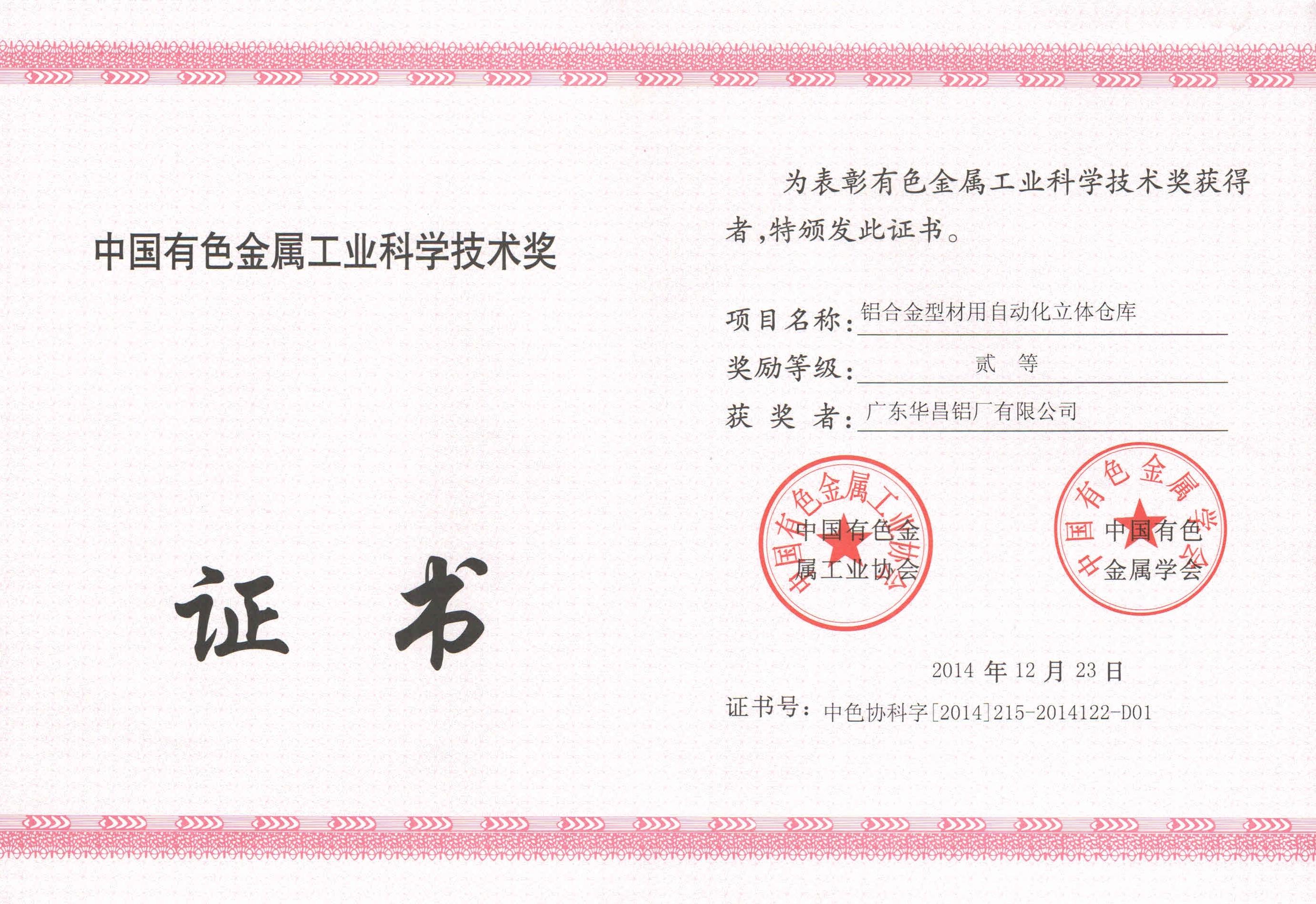 “中國有色金屬工業(yè)科學技術二等獎” |