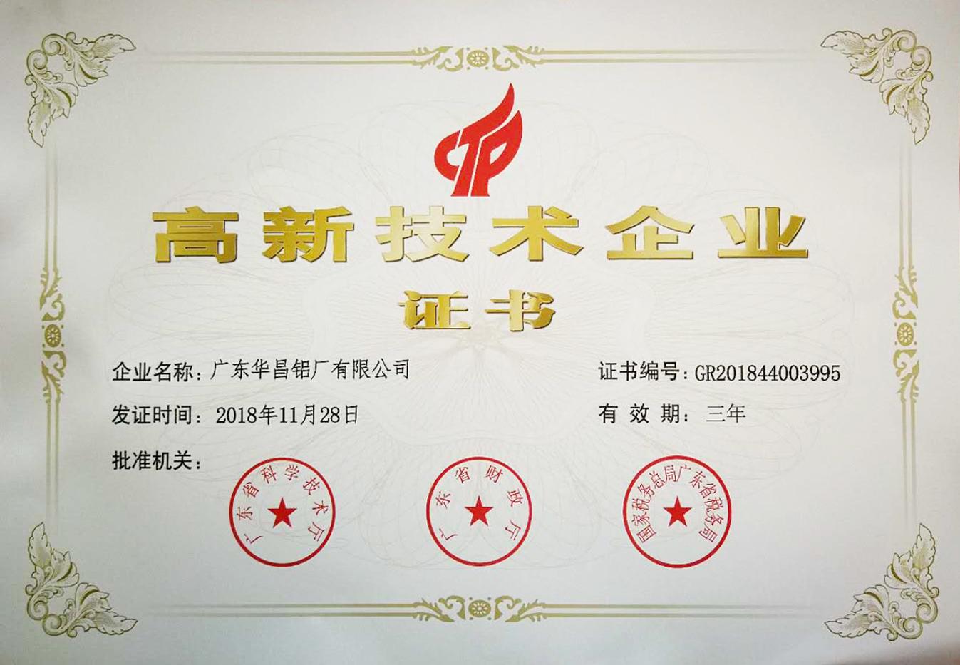 2018高新技術企業(yè)證書 |